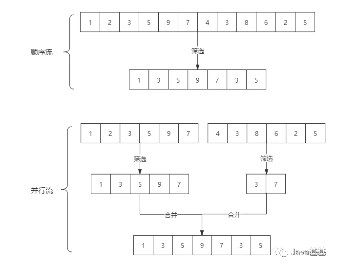 stream和parallelStream的简单区分: stream是顺序流,由主线程按顺序对流执行操作,而parallelStream是并行流,内部以多线程并行执行的方式对流进行操作,但前提是流中的数据处理没有顺序要求。例如筛选集合中的奇数,两者的处理不同之处:如果流中的数据量足够大,并行流可以加快处速度。