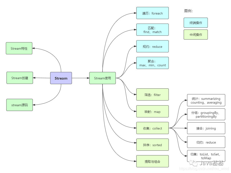 collect,收集,可以说是内容最繁多、功能最丰富的部分了。从字面上去理解,就是把一个流收集起来,最终可以是收集成一个值也可以收集成一个新的集合。